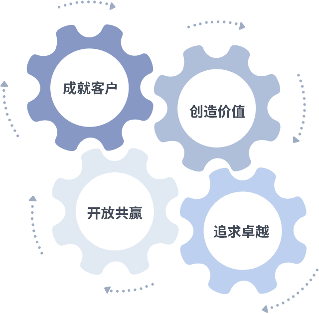 成就客户是一切决策的出发点,创造价值是衡量所有工作的标准,追求卓越是bwin必赢做事做人的态度,开放共赢是bwin必赢的格局也是最终的结果。价值观的齿轮环环相扣,推动着组织里的每个人不断向前。